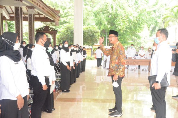 Bupati Sidoarjo Ahmad Muhdlor memberikan ucapan selamat bagi CPNS yang menerima SK, sekaligus memotivasi para CPNS.