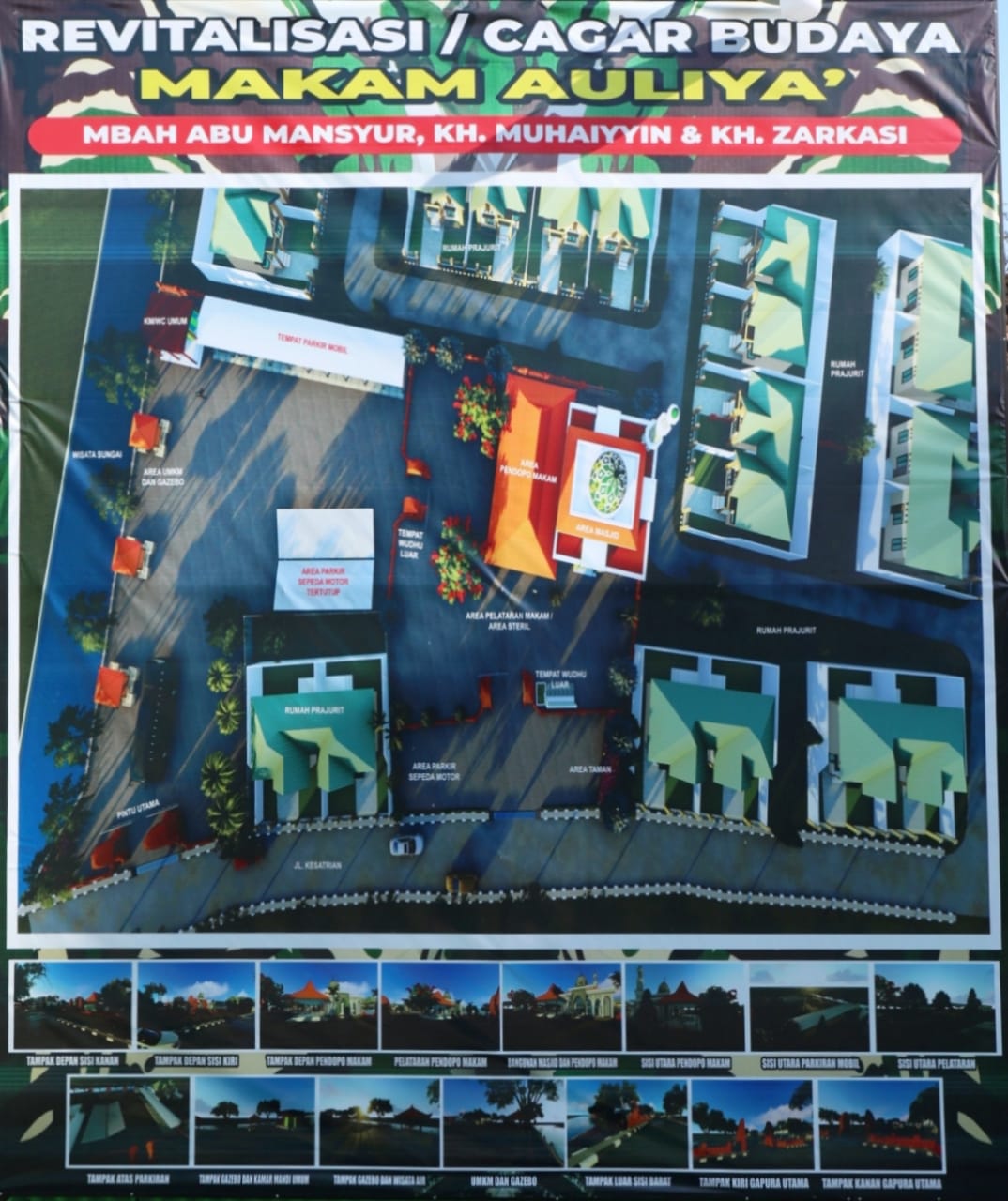 SIDOARJO. KemiriNews. Com |  Revitalisasi makam ulama Pondok Pesantren Sono, Desa Sidokerto Kecamatan Buduran Sidoarjo sudah ada maketnya. Komplek makam yang berada di dalam Asrama Guspujat Puspalad (Pusat Peralatan TNI AD) Buduran itu akan dibangun pendopo. Selain itu, area parkir diperluas lagi dibangun khusus untuk tempat parkir mobil dan motor.