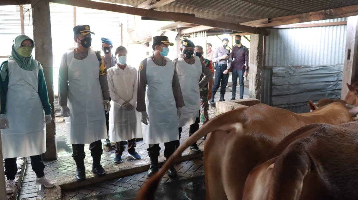 Kapolresta Sidoarjo Kombes Pol. Kusumo Wahyu Bintoro, Jumat (24/6/2022), pun turun langsung ke kandang peternak sapi, guna mengecek penyuntikan vaksin dan vitamin pada sapi yang diperuntukan hewan kurban pada saat Idul Adha nanti.