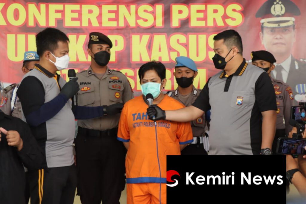 “Pelaku pembunuhan di Sugihwaras Candi adalah suami siri korban. Setelah sempat kabur dari kota satu ke kota lainnya, akhirnya pelaku berhasil kita tangkap di sebuah masjid di Yogyakarta pada Jumat 22 Juli 2022 dini hari,” terang Kapolresta Sidoarjo Kombes Pol. Kusumo Wahyu Bintoro.