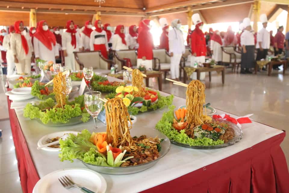 SIDOARJO. KemiriNews. Com | Dalam rangka memeriahkan HUT ke 77 RI tahun 2022 Gabungan Organisasi Wanita (GOW) Kabupaten Sidoarjo menggelar Sosialisasi “Menjaga Pola Hidup Sehat dengan Menerapkan Gizi Seimbang di Era New Normal” di pendopo Delta Wibawa, Jumat, 26/08/2022. Kegiatan tersebut juga diisi dengan beberapa lomba seperti lomba memasak Mie, Lomba Goyang Bola dan Lomba Yel-yel serta Kostum terbaik. Lomba tersebut diikuti 75 peserta. Salah satunya yang ikut adalah Ketua Dharma Wanita Persatuan Kabupaten Sidoarjo Ny. Ary Andjar Surjadianto. Selain untuk memeriahkan HUT ke 77 RI, kegiatan ini juga bertujuan mempererat tali silaturrahmi antar anggota dan pengurus GOW dengan menghadirkan narasumber dari PT Suprama Mie burung Dara Chef Elis juga Ariyanto, A.Md.Par yang merupakan Konsultan Dapur Gizi Rumah Sakit.