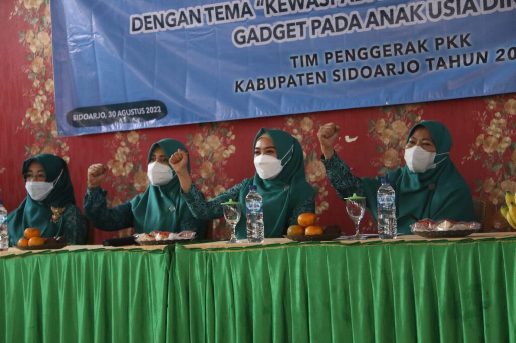 SIDOARJO. KemiriNews. Com | TP.PKK Kabupaten Sidoarjo terus berupaya mencegah dampat buruk penggunaan gadget yang berlebihan. Upaya tersebut dilakukan melalui Sosialisasi Pentingnya Orang tua dalam Pendidikan Anak Usia Dini. Pagi tadi, TP.PKK Kabupaten Sidoarjo yang di komandoi oleh Hj. Sa’adah Ahmad Muhdlor, S.Hum atau yang akrab dipanggil Ning Sasha itu jemput bola ke kecamatan dan desa-desa. Kali ini Ning Sasha bersosialisasi Desa Kemangsen Kecamatan Balongbendo dan di Kecamatan Tarik, Selasa, (30/8). Tema yang diambil “Kewaspadaan Dampak Penggunaan Gadget Pada Anak Usia Dini”.