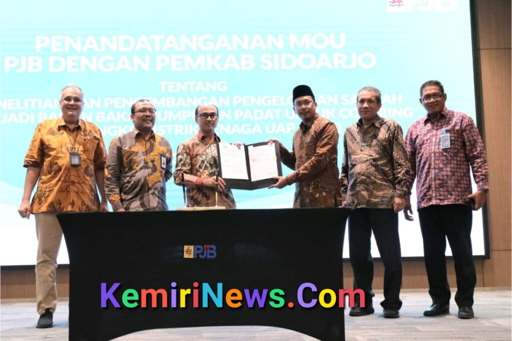 SIDOARJO. KemiriNews. Com | Kerjasama Penelitian dan Pengembangan Pengelolaan Sampah menjadi Bahan Bakar Jumputan Padat untuk Co Firing Pembangkit Listrik Tenaga Uap diteken Bupati Sidoarjo Ahmad Muhdlor dan Direktur Operasi 2 PT. PJB Rachmanoe Indarto. Selasa, (13/9/2022) di Kantor Pusat PT. PJB, Ketintang Surabaya.