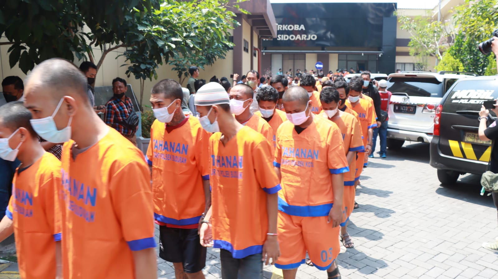SIDOARJO. KemiriNews. Com | Sebanyak 73 orang diamankan sebagai tersangka atas kasus narkoba oleh aparat Polresta Sidoarjo, Jawa Timur.