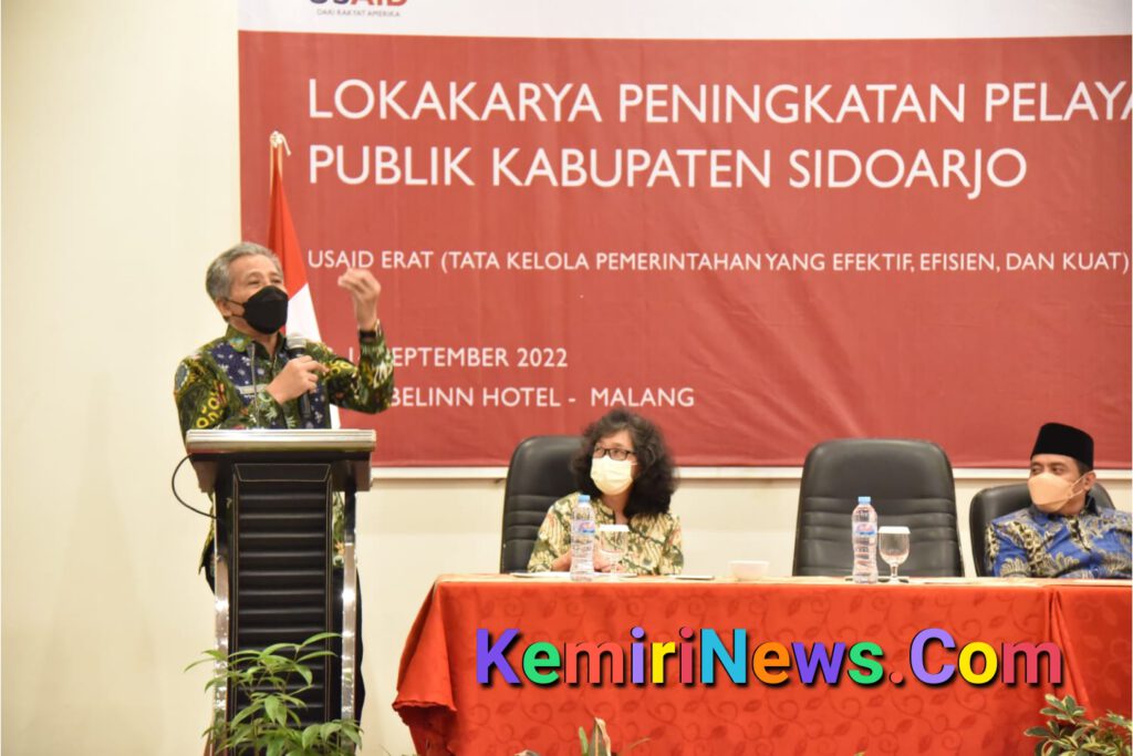 SIDOARJO. KemiriNews. Com | Pemkab Sidoarjo terus berbenah dalam menata dan meningkatkan pelayanan publiknya. Hal itu dilakukan karena Pemkab Sidoarjo komitmen menjaga dan meningkatkan pelayanan publik yang prima. Seperti dengan menggelar Lokakarya Peningkatan Pelayanan Publik Kabupaten Sidoarjo di Hotel Swiss Bell Inn Malang, Selasa, (13/9). Lokakarya digelar selama dua hari mulai tanggal 13-14 September 2022 dengan peserta 105 ASN perwakilan OPD, kecamatan, kelurahan, Puskesmas serta RSUD Sidoarjo dan RSUD Sidoarjo Barat.