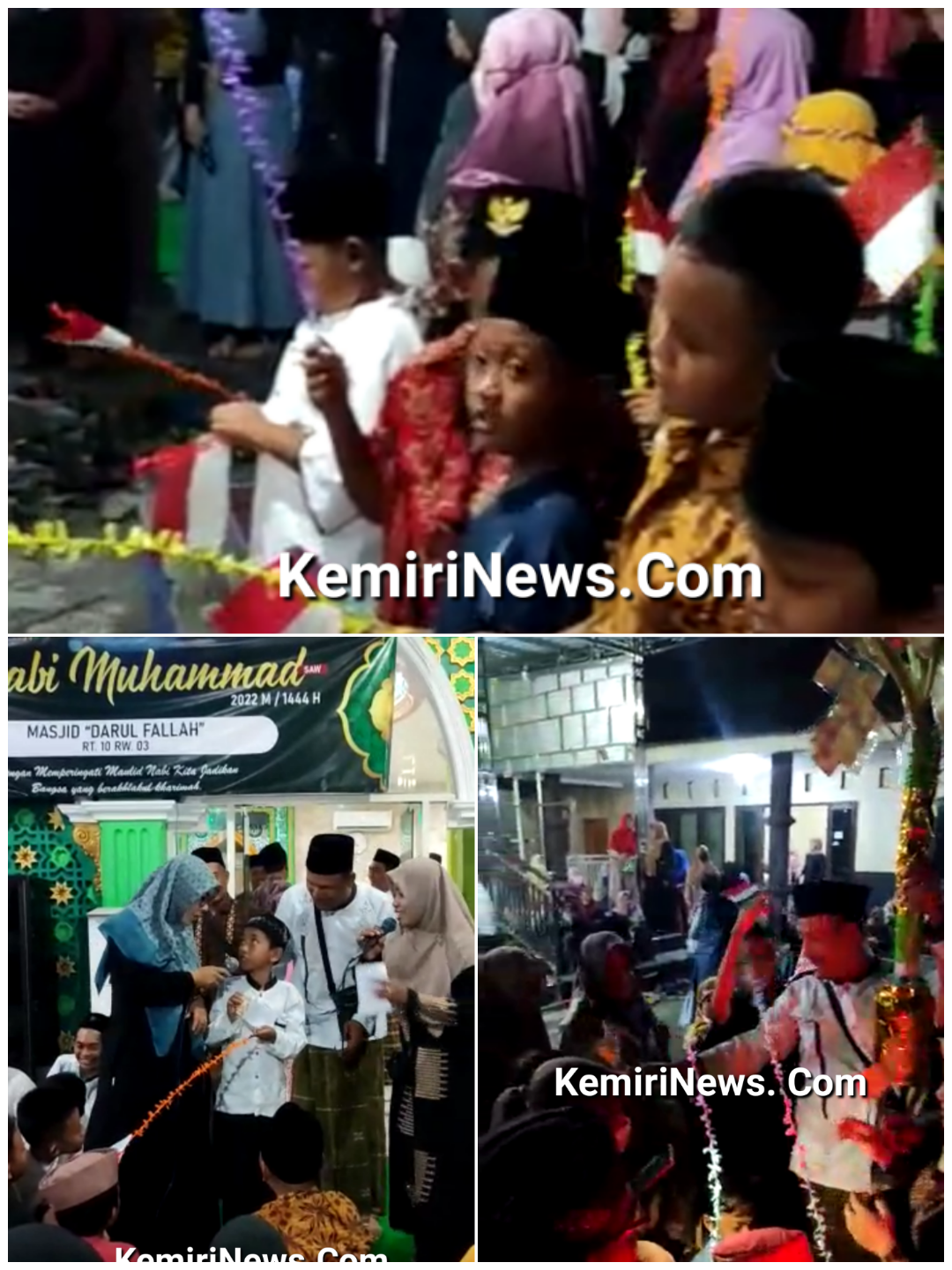 Dalam momentum bulan Maulid Nabi besar Muhammad Saw Warga Desa Kemiri RT 10 RW 03 kecamatan Sidoarjo mengadakan peringatan Maulid Nabi yang bertempat di Masjid Darul Falah. Jum’at malam (7/10/2022)
