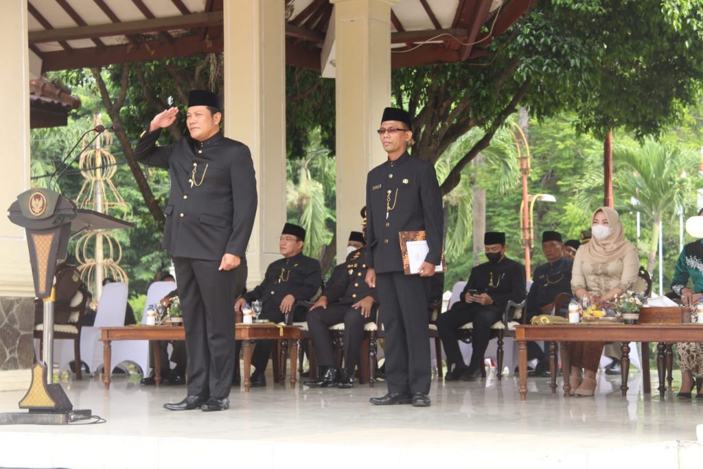 SIDOARJO. KemiriNews. Com | Pemerintah Kabupaten Sidoarjo  menggelar Upacara Peringatan Hari Jadi ke-77 Provinsi Jawa Timur tahun 2022, di Alun-alun Sidoarjo, Rabu (12/10/2022). Upacara yang dipimpin oleh Wakil Bupati Sidoarjo H. Subandi kali ini mengambil tema  “Optimis Jatim Bangkit”. Upacara yang dihadiri Forkopimda Sidoarjo diikuti oleh TNI-Polri, ASN serta para pelajar Sidoarjo.