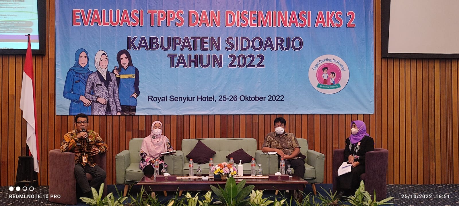 SIDOARJO. KemiriNews. Com | Pelaksanaan kegiatan Tim Percepatan Penurunan Stunting (TPPS) Kabupaten Sidoarjo serta Desiminasi Hasil Audit Kasus Stunting (AKS) Tahap 2 dievaluasi Pemkab Sidoarjo. Evaluasi dilakukan di Hotel Royal Senyiur, Prigen Pasuruan selama dua hari, 25-26 Oktober 2022. Sekitar 200 orang TPPS Kecamatan yang terdiri dari Camat, kepala Puskesmas, KUA Kecamatan, TP.PKK Kecamatan, PKB Kecamatan serta TPPS Desa/Kelurahan Lokus stunting 2023 hadir dalam kegiatan itu. Kegiatan tersebut dibuka Asisten Administrasi Pemerintahan dan Kesra Pemkab Sidoarjo, M. Ainur Rahman AP MSi yang mewakili Bupati Sidoarjo H. Ahmad Muhdlor S.IP, Selasa, (25/10). Evaluasi kegiatan TPPS dilakukan dalam upaya percepatan penurunan stunting di Kabupaten Sidoarjo.