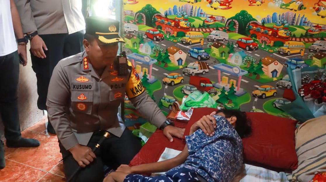 SIDOARJO. KemiriNews. Com | Kapolresta Sidoarjo Kombes Pol. Kusumo Wahyu Bintoro mendatangi korban tragedi Kanjuruhan di Desa Kesambi, Kecamatan Porong, Sidoarjo. Kedatangan Kapolresta Sidoarjo tersebut untuk melakukan anjangsana serta memberikan bantuan kepada korban tragedi Kanjuruhan Malang. Kamis pagi (3/11/2022)