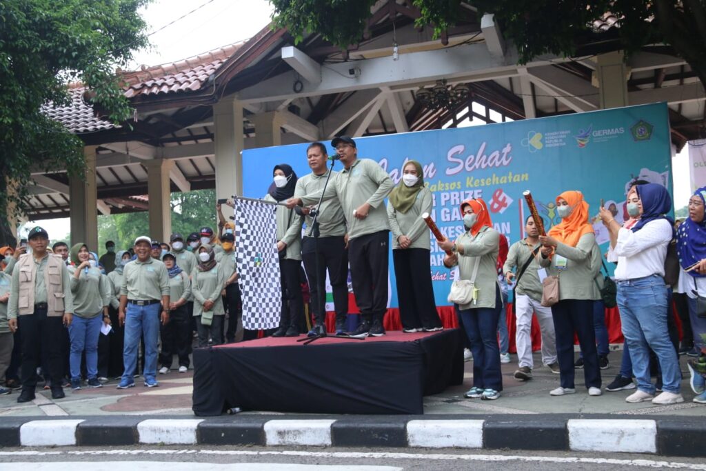 SIDOARJO. KemiriNews. Com | Bertepatan dengan Hari Kesehatan Nasional (HKN) tanggal 12 November 2022, Dinas Kesehatan Kabupaten Sidoarjo menggelar jalan sehat bersama bersama para kader kesehatan dan warga Sidoarjo. Jalan sehat HKN ke 58 diberangkatkan Bupati Sidoarjo H. Ahmad Muhdlor, S.IP di depan Pendopo Delta Wibawa Sidoarjo, Sabtu, (12/11).