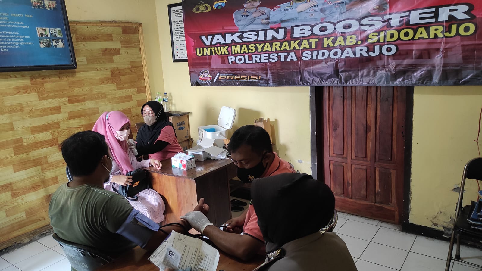 Polsek jajaran di wilayah Polresta Sidoarjo, antisipasi laju pertambahan Covid-19 dengan terus memasifkan vaksinasi booster bagi masyarakat.
