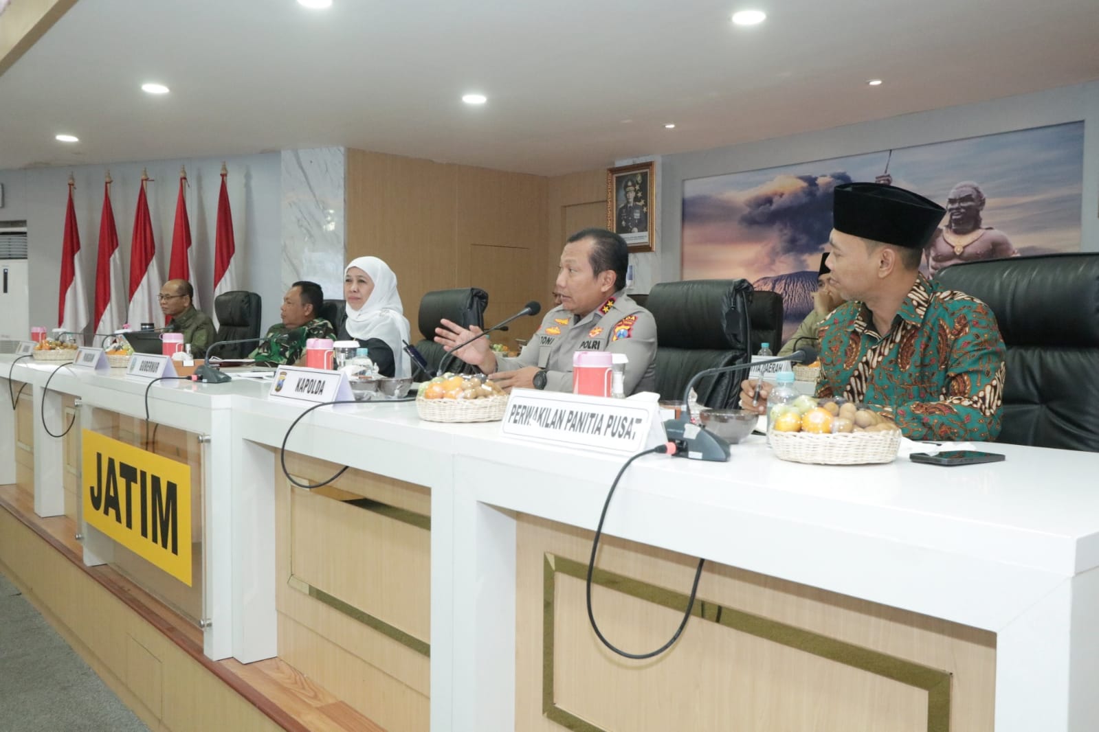 Untuk mempersiapkan Harlah NU 2023. Forkopimda (Forum Pimpinan Daerah) Jawa Timur, Gubernur Jatim Khofifah Indar Parawansa, Kapolda Jatim Irjen Pol Dr. Toni Harmanto,MH, Pangdam V Brawijaya Mayjen TNI Farid Makruf, menggelar Rakor kesiapan pengamanan kegiatan puncak peringatan 1 Abad Harlah NU, di Gedung Rupatama, Mapolda Jawa Timur, Selasa (31/1/2023).
