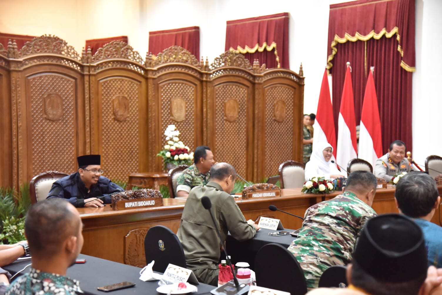 Dukungan ASN Sidoarjo itu dilaporkan Bupati Sidoarjo H. Ahmad Muhdlor S.IP kepada Gubernur Jawa Timur Hj. Khofifah Indar Parawansa pada Rapat Koordinasi/Rakor terkait finalisasi persiapan acara puncak Harlah 1 Abad NU di gedung Negara Grahadi Surabaya, Jumat sore, (3/2). Rakor tersebut dihadiri Kapolda Jatim Irjen Toni Harmanto, Pangdam V Brawijaya Mayjen TNI Farid Makruf, Kabinda Jatim Brigjen TNI Fahmi Sudirman serta Dirlantas Polda Jatim Kombespol M. Taslim Choirudin.