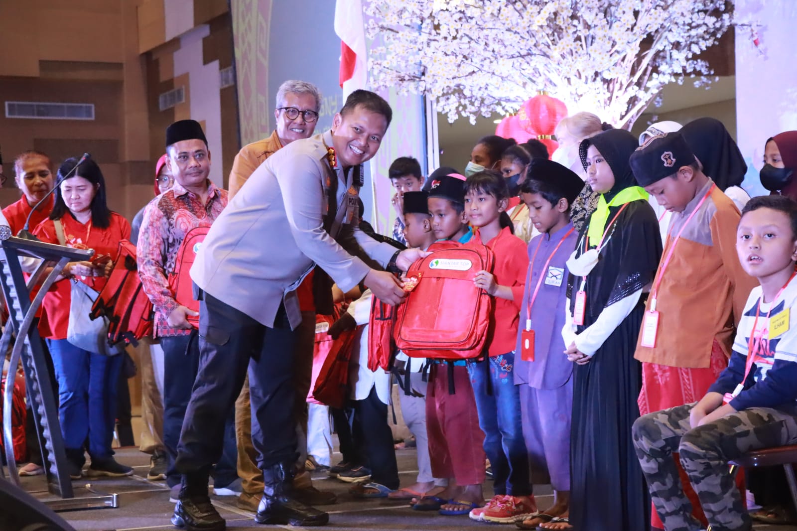 SIDOARJO. KemiriNews. Com | Kapolresta Sidoarjo Komisaris Besar Polisi Kusumo Wahyu Bintoro menghadiri pembukaan Cap Go Meh 2023 dan santunan anak yatim, Minggu (5/2/2023), bertempat di MPP Sidoarjo.