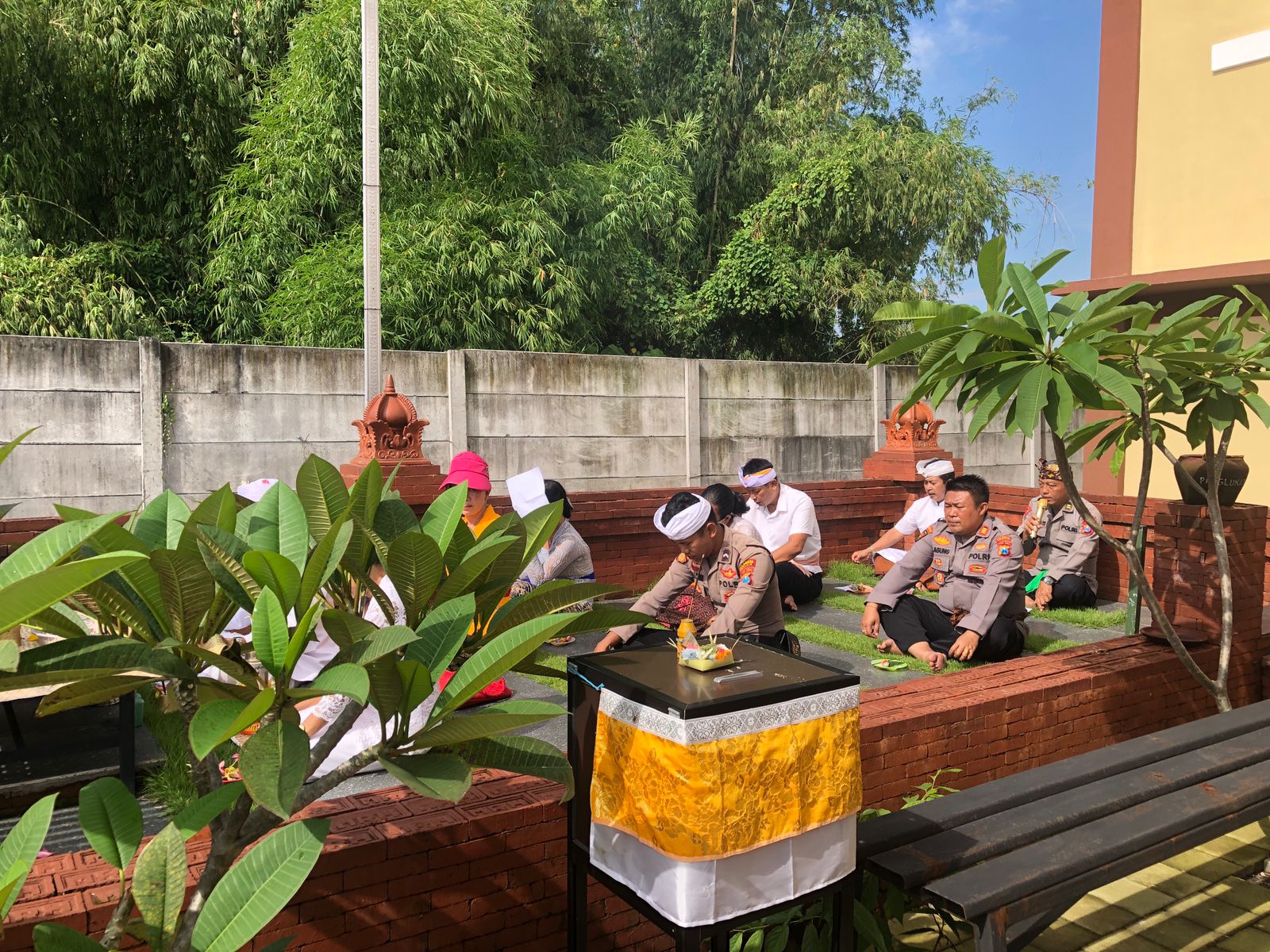 SIDOARJO. KemiriNews. Com | Anggota Polresta Sidoarjo, polsek jajaran beragama Hindu beserta keluarga dan umat Hindu di sekitar Mako Polresta Sidoarjo, Senin (6/3/2023), melaksanakan ibadah Hari Suci Purnama di Pura Kertha Bumi Bhayangkara.