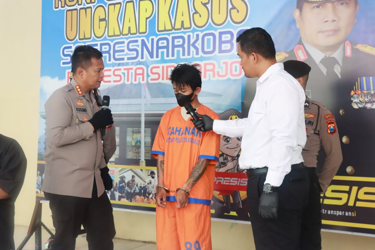 SIDOARJO. KemiriNews. Com| Seorang warga yang kedapatan menyimpan dan menerima barang haram berupa Narkoba, dan tersangka tidak dapat berkutik saat Petugas Kepolisian menggelandangnya ke Mapolresta Sidoarjo.