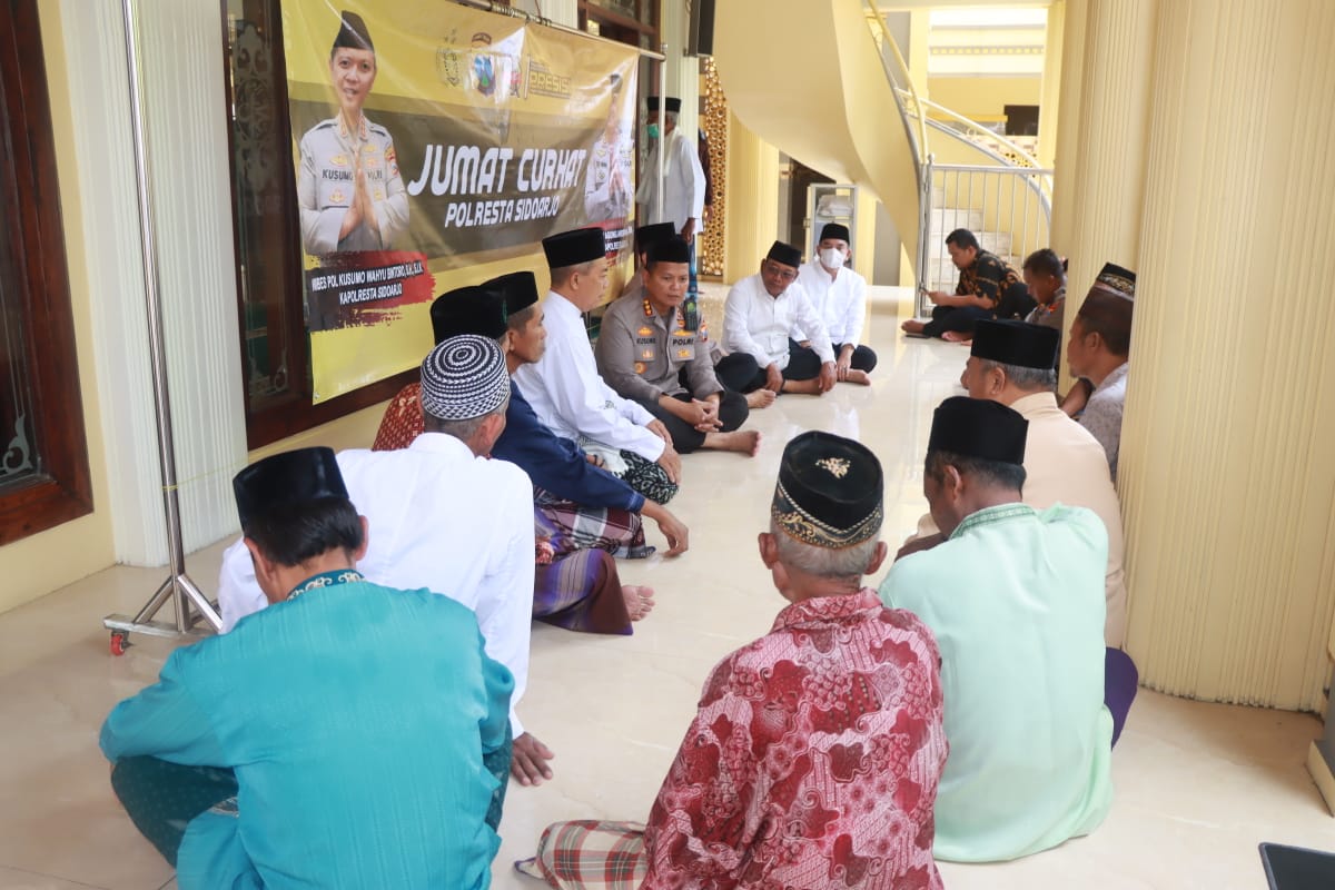 Dalam Jumat Curhat di wilayah Kecamatan Jabon tersebut, Kapolresta Sidoarjo Kombes Pol. Kusumo Wahyu Bintoro didampingi Wakapolresta Sidoarjo AKBP Deny Agung Andriana dan pejabat utama Polresta Sidoarjo.