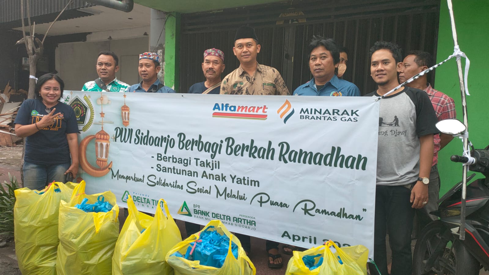 Ratusan paket takjil dibagikan kepada para pengguna jalan yang kebetulan melintas di depan Balai Wartawan Sidoarjo yang juga menjadi sekretariat PWI Sidoarjo.