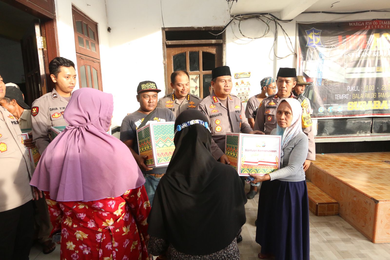 Kali ini Bidang Hubungan Masyarakat ( Bidhumas ) bersama Bidang Hukum (Bidkum) Polda Jatim membagikan 100 paket sembako bagi masyarakat di wilayah Kecamatan Krembangan Surabaya.