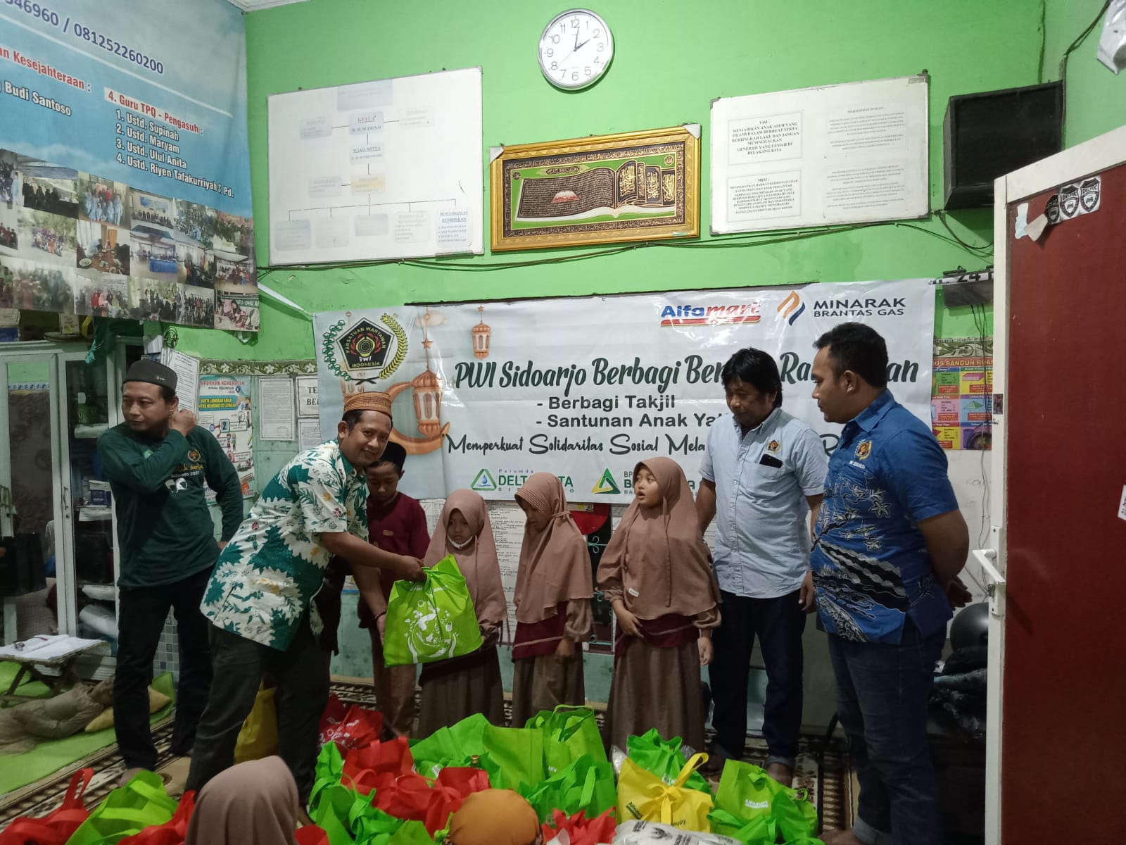 SIDOARJO- KemiriNews. Com | Sebagai bentuk kepedulian sosial dan berbagi kebahagiaan di bulan suci Ramadhan, Persatuan Wartawan Indonesia (PWI) Kabupaten Sidoarjo memberikan santunan kepada anak yatim piatu.