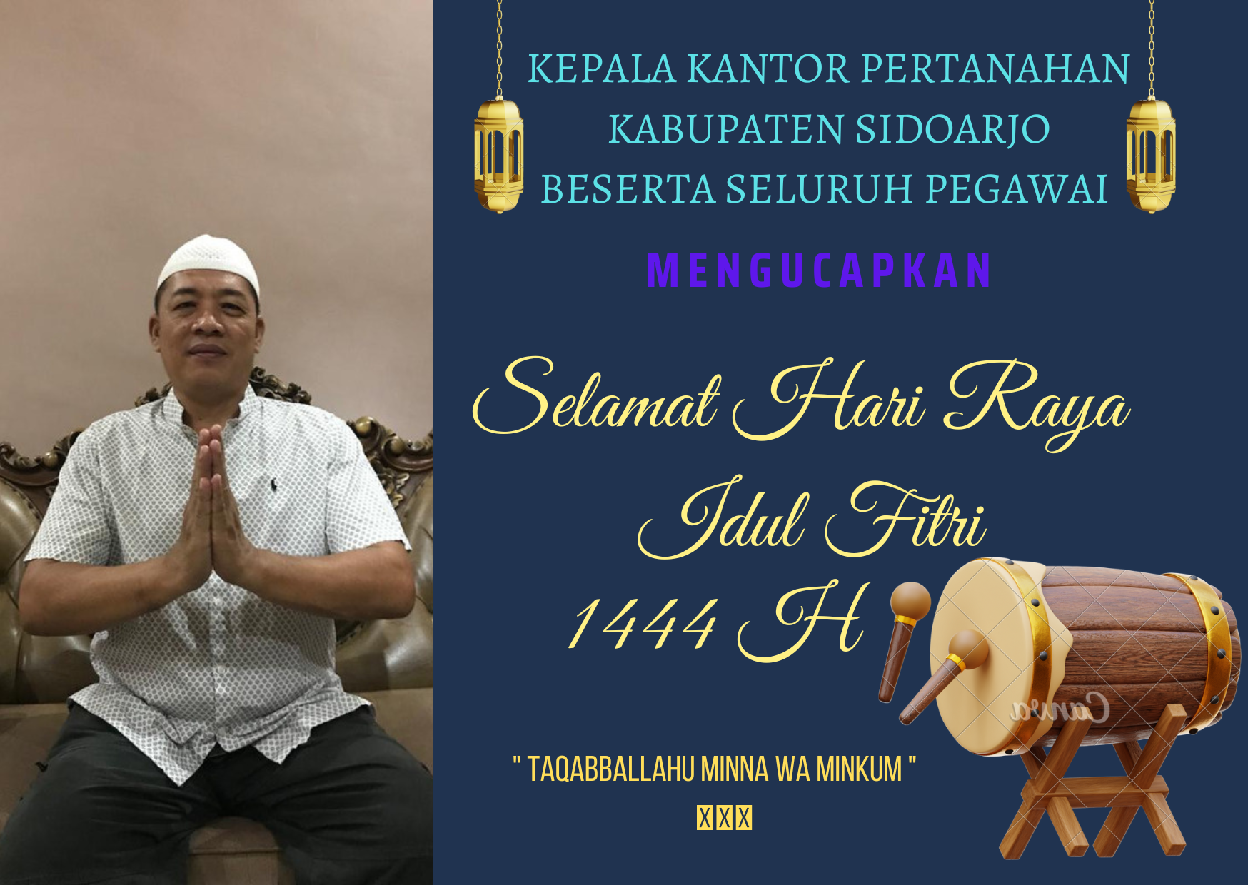 Jatim Kepala Kantor Pertanahan kabupaten Sidoarjo Mengucapkan Selamat Hari Raya Idul Fitri 1444 H Tim 21 April 2023 Post navigation Previous Previous post: Kepala BPN Sidoarjo Serahkan Sertifikat Tanah PolairudNext Next post: Kepala Kantor Pertanahan Kabupaten Gresik Mengucapkan Selamat Hari Raya Idul Fitri 1444 H Related News Jatim Sidoarjo Serentak, DJP Jawa Timur Blokir 3443 Berkas Penunggak Pajak 0 Jatim Sidoarjo Empat Tersangka Korupsi Proyek Saluran Air Desa Wage di Ringkus Kejari Sidoarjo 0