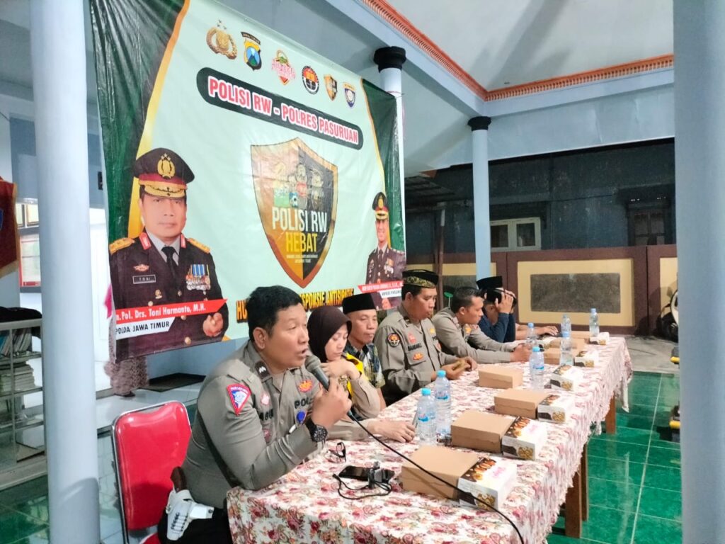 PASURUAN. KemiriNews. Com | Polisi RW jajaran Polres Pasuruan Polda Jatim, yang bertugas di Kelurahan Kejayan melaksanakan silaturahmi Kamtibmas di Balai Kelurahan Kejayan, Kabupaten Pasuruan.