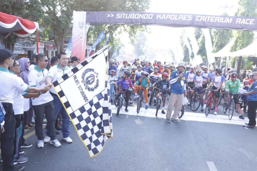 Pelepasan atlet sepeda balap dilakukan oleh Kapolres Situbondo bersama Forkopimda Situbondo di Jalan Raya PB Sudirman.