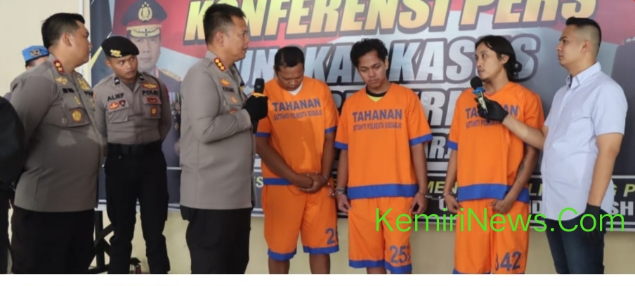SIDOARJO. KemiriNews. Com | Tiga tersangka ASR, AZM dan PA warga Jabon di ringkus Polisi, karena terlibat pengeroyokan seorang pria S asal Candi. Peristiwa terjadi pada 30 Juni 2023 sore di Desa Jemirahan, Jabon, Sidoarjo.