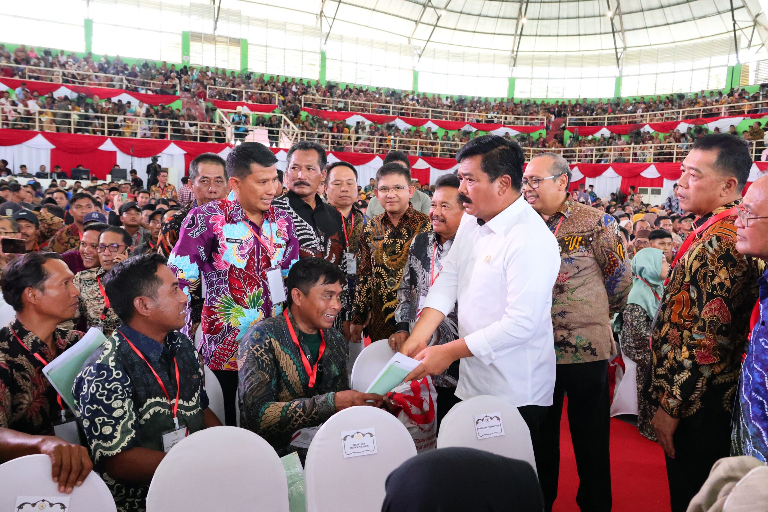 Acara pembagian sertifikat tanah ini dihadiri, Menteri Agraria dan Tata Ruang/Kepala Badan Pertanahan Nasional (ATR/BPN), Hadi Tjahjanto, Menteri Perdagangan (Mendag) Zulkifli Hasan, Panglima TNI Agus Subiyanto dan Gubernur Jatim Khofifah Indar Parawansa.
