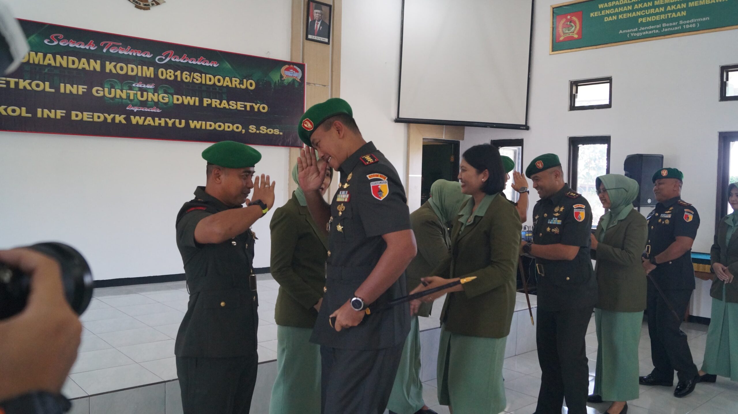 SIDOARJO. KemiriNews. Com | Posisi Komandan Kodim (Dandim) 0816/Sidoarjo resmi berganti. Letkol Inf Guntung Dwi Prasetyo digantikan oleh Letkol Inf Dedyk Wahyu Widodo, S.Sos., yang sebelumnya menjabat sebagai Danyonif 511/DY, Korem 081/DSJ Madiun, Kodam V/Brawijaya. Letkol Inf Guntung Dwi Prasetyo selanjutnya menduduki jabatan sebagai Pabandya-1/Jahril Spaban VII/Binjahril Spersad.
