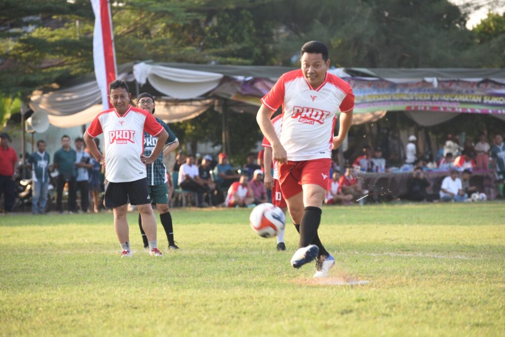 SIDOARJO. KemiriNews. Com | Bupati Sidoarjo, Subandi bersama Dandim 0816 Sidoarjo Letkol Inf Dedyk Wahyu Widodo ikut fun football dengan Persaudaraan Kepala Desa Indonesia Kecamatan Sukodono.