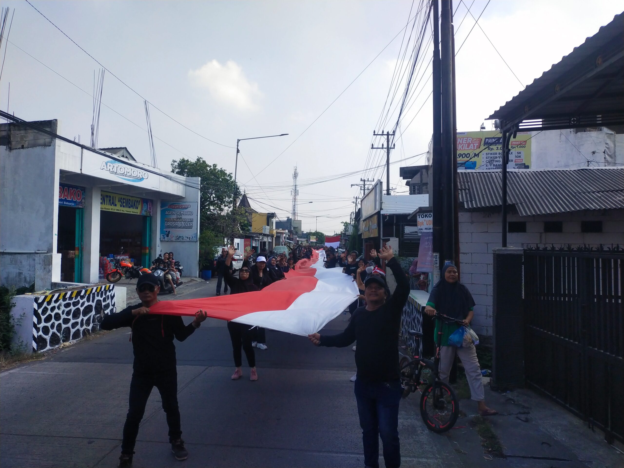 Dalam kegiatan tersebut, bendera merah putih sepanjang 100 meter dibentangkan dan diarak keliling desa Kemiri Kecamatan Sidoarjo kurang lebih sejauh 4 KM.