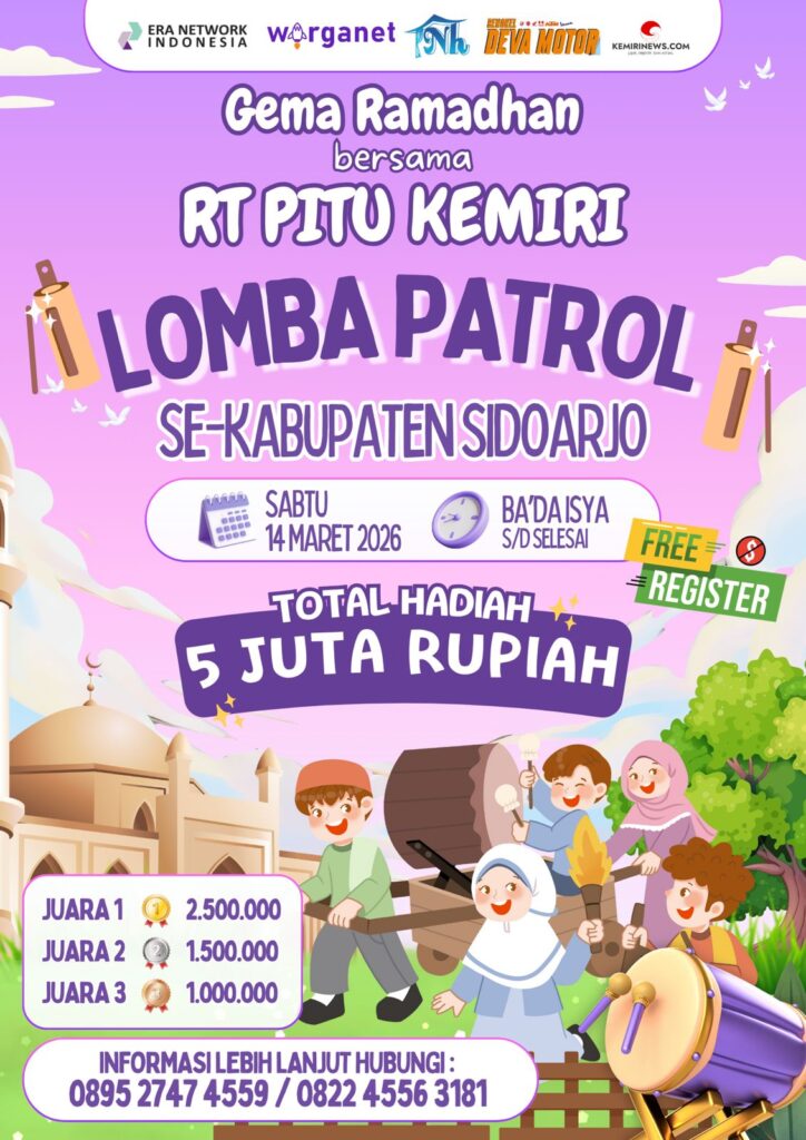 SIDOARJO. KemiriNews. Com | Dalam rangka menyemarakkan bulan suci Ramadhan, media online KemiriNews.com bersama sponsor PT Era Network Indonesia, Warganet, Nihayah Tent dan Deva Motor menggelar Lomba Patrol tingkat Kabupaten Sidoarjo dengan tema “Semarak Gema Ramadhan.”