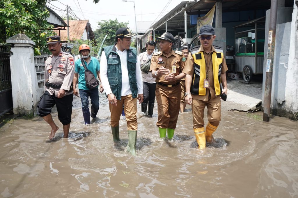 SIDOARJO. KemiriNews. Com | Hujan deras disertai angin kencang mengguyur Sidoarjo, Minggu sore kemarin (23/10/22). Akibatnya rumah warga dikawasan Kecamatan Sidoarjo, Buduran dan Taman terdampak banjir. Angin puting beliung juga menyambar tiga kecamatan tersebut. Korban bencana alam itu ditinjau Wakil Bupati Sidoarjo, H. Subandi SH, Senin pagi (24/10).