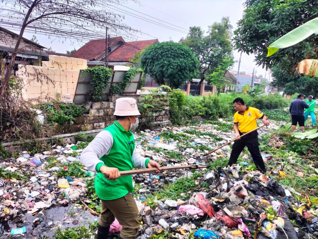 SIDOARJO. KemiriNews. Com | Antisipasi bencana hidrometeorologi yang datang sewaktu-waktu, Forkopimka Tanggulangin melakukan kerja bakti serentak bersih sungai, Minggu (4/12/2022).